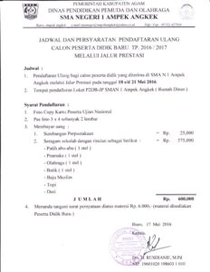 Jadwal dan Persyaratan pendaftaran Ulang Calon Peserta Didik baru TP. 2016/ 2017 Melalui Jalur Prestasi